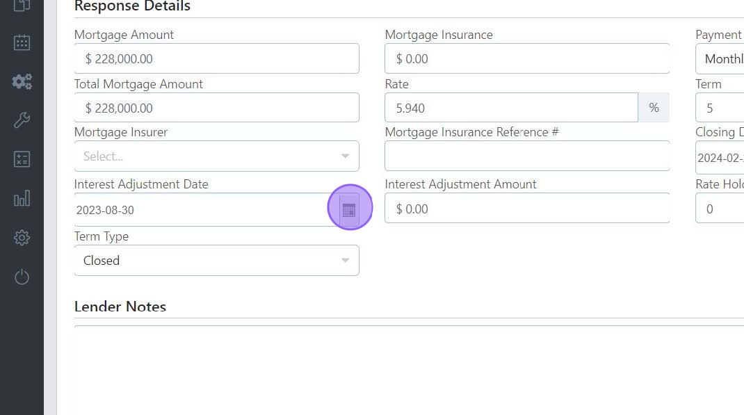3) The Response Details will have been filled in from the information on the mortgage submission. You can update any as needed.