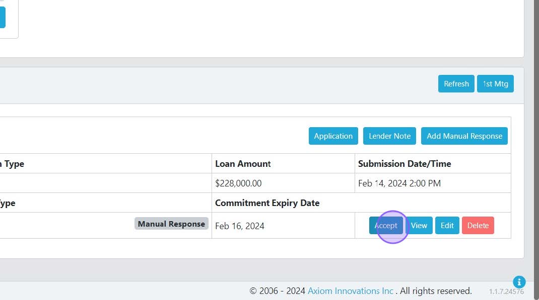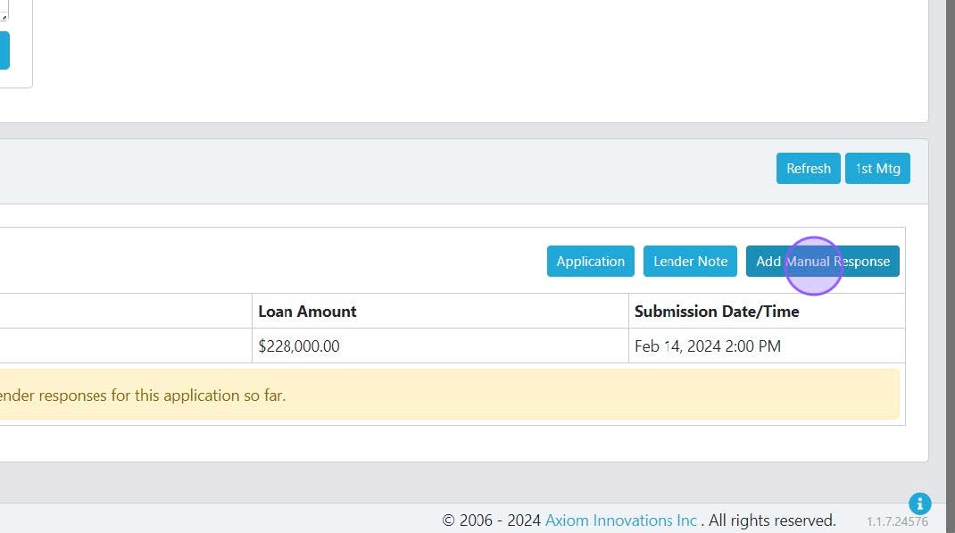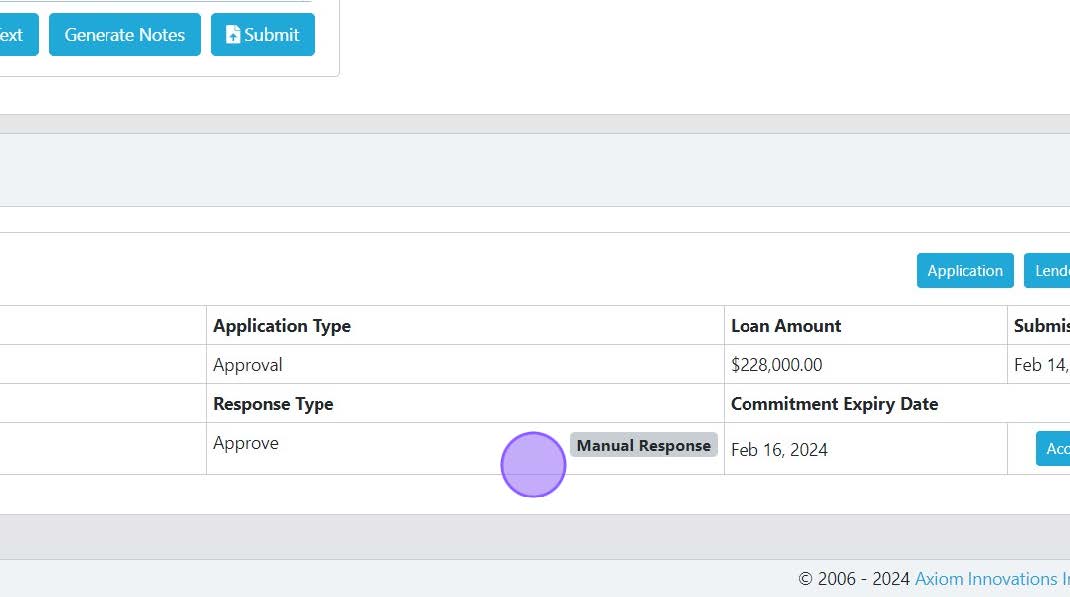 5) The response is recorded here as a "Manual Response" to differentiate it from a response that came back through the system from a lender.