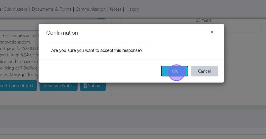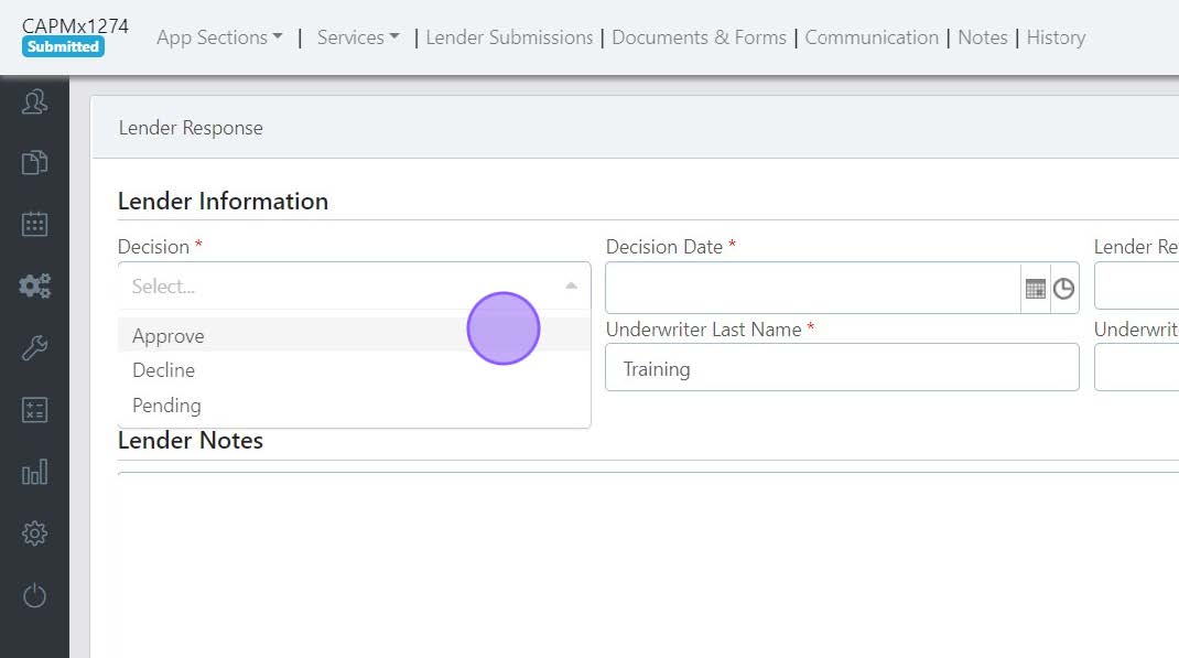 Lenders may respond through the system, or they may communicate with you directly by email or via their lender portal. If they do not respond through the system, or if they respond with information that does not match your commitment, you will need to take manual action to record that approval response.