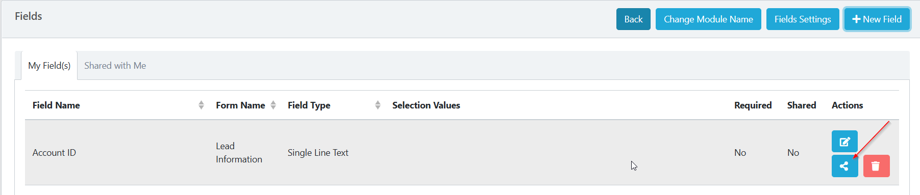 4) Created forms can be shared to team members by clicking the share icon.