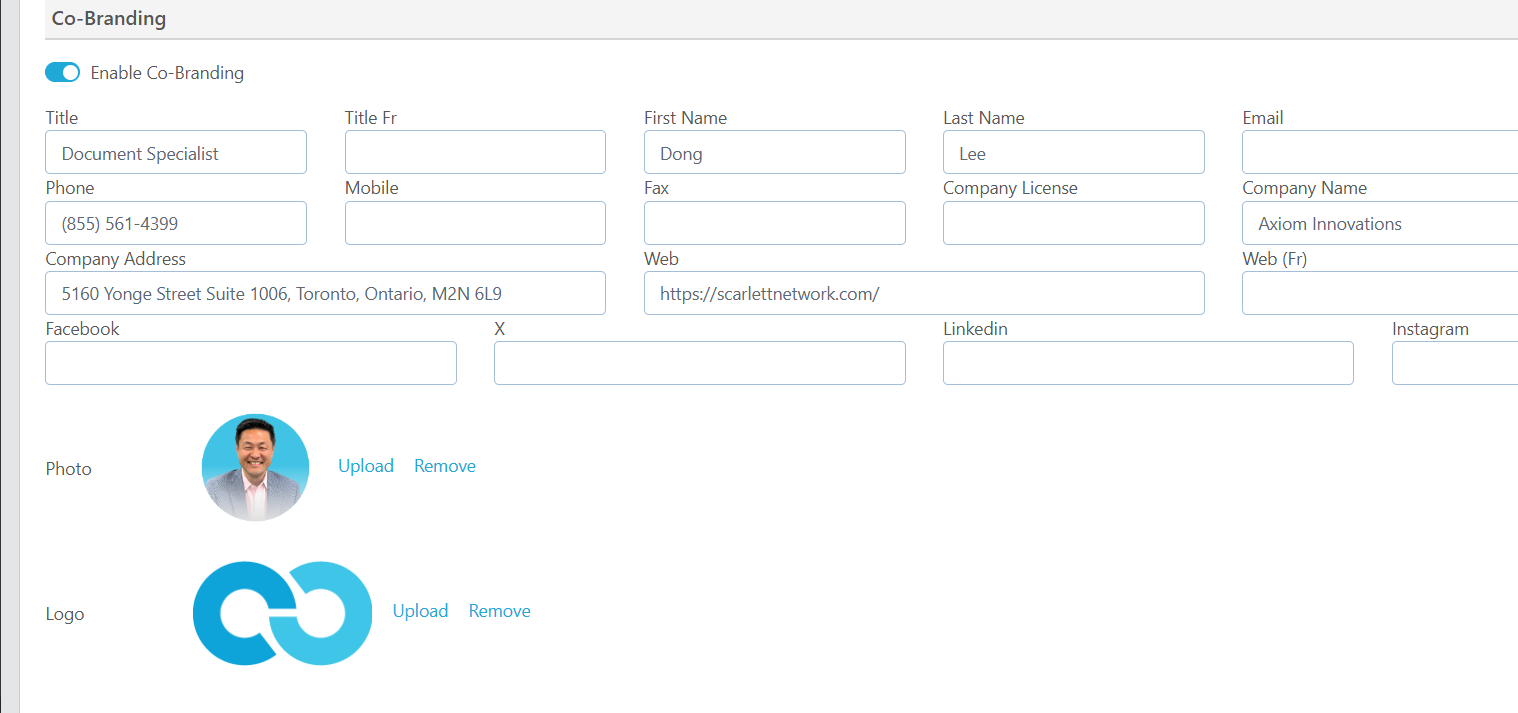 4) At the bottom part of the application settings, simply toggle on "Co-Branding" and fill in the information of the other person.